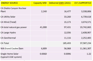 Now, a single gallon of gas contains enough energy to easily propel a mid-sized car at highways speeds for 30 miles. That’s a lot of energy, and we use a lot of gasoline in the USA. So, if we want to replace gasoline and diesel fuel with electricity generated from renewable resources, then it’s important to ask; how much electricity do we need; where will it come from; how will we distribute it; and can we realistically increase reliable, green-energy production to meet the goals and rules for EV sales? If we end up burning more fossil fuels to generate electricity to power EV’s, then there’s really no benefit to using EV’s in terms of reducing green-house emissions. And if we drive up demand for electricity without a simultaneous increase in supply, then energy prices will rise. That’s the basic law of supply and demand.